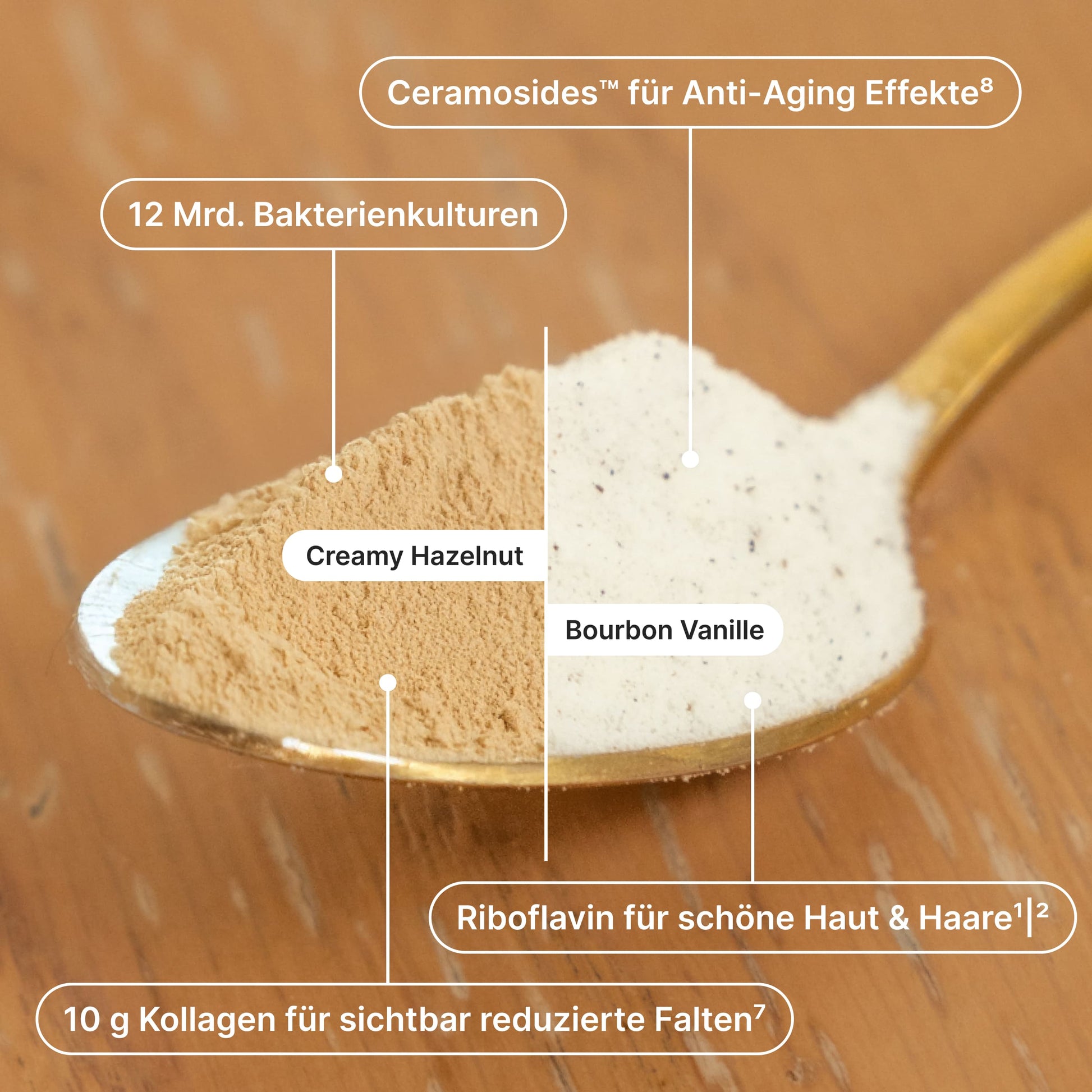 • Köstlicher Bourbon Vanille oder Creamy Hazelnut Geschmack: Endlich ein Kollagen-Drink, der schmeckt