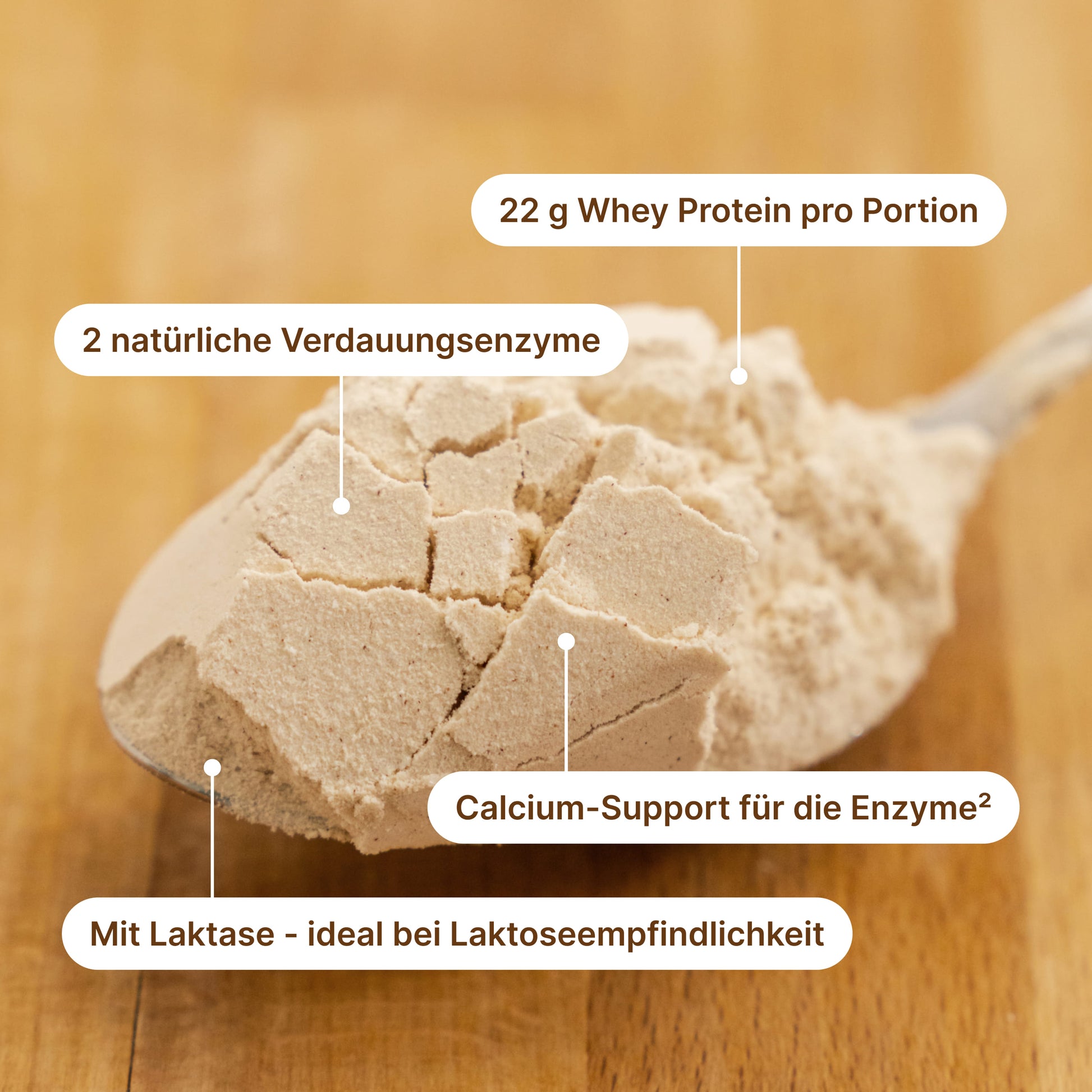 92 % de mélange de protéines (concentré de protéines de lactosérum, isolat de protéines de lactosérum, émulsifiant : lécithines (tournesol)), dextrine résistante (fibre alimentaire issue du maïs), arôme naturel, sel, épaississant : gomme xanthane ; 0,33 % de bromélaïne, édulcorant : glycosides de stéviol produits par voie enzymatique ; 0,17 % de papaïne, poudre de vanille désaromatisée, 0,10 % de lactase.