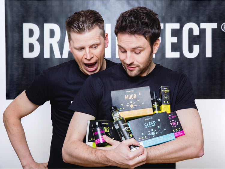 Our founder, former athlete Fabian Foelsch, was kept awake by stress and sleeplessness. In his search for answers, he discovered the world of biohacking – and how nutrition is the key not only to physical performance, but also to deep sleep and mental balance. Out of this realization, BRAINEFFECT was founded in 2016: built on the conviction that a strong, happy mind needs the right nutrients to truly thrive.