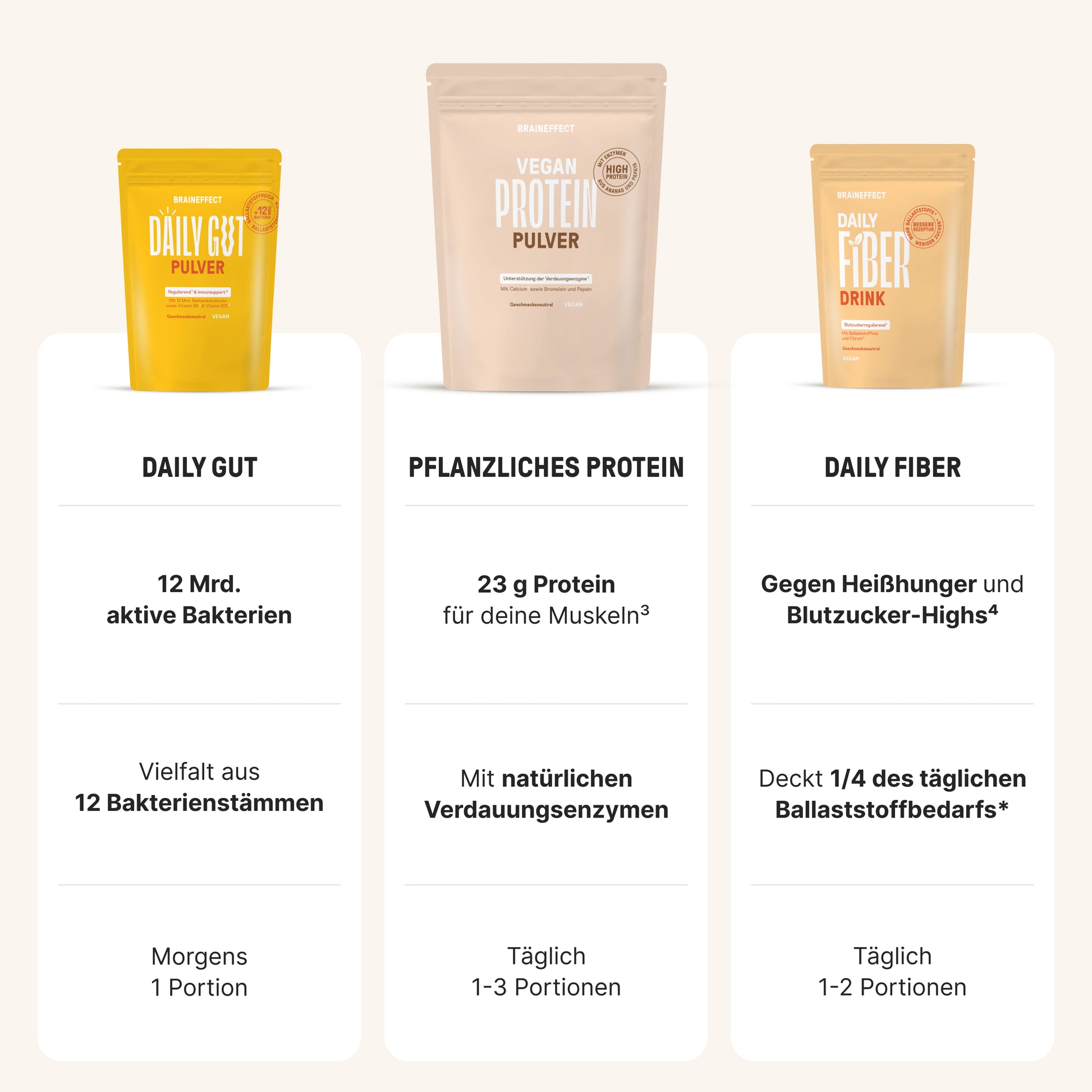 Dieses Sparpaket besteht aus mehreren Produkten. Inhaltsstoffe & Nährwerte der einzelnen Produkte kannst du im Shop auf den zugehörigen Produktseiten einsehen.
